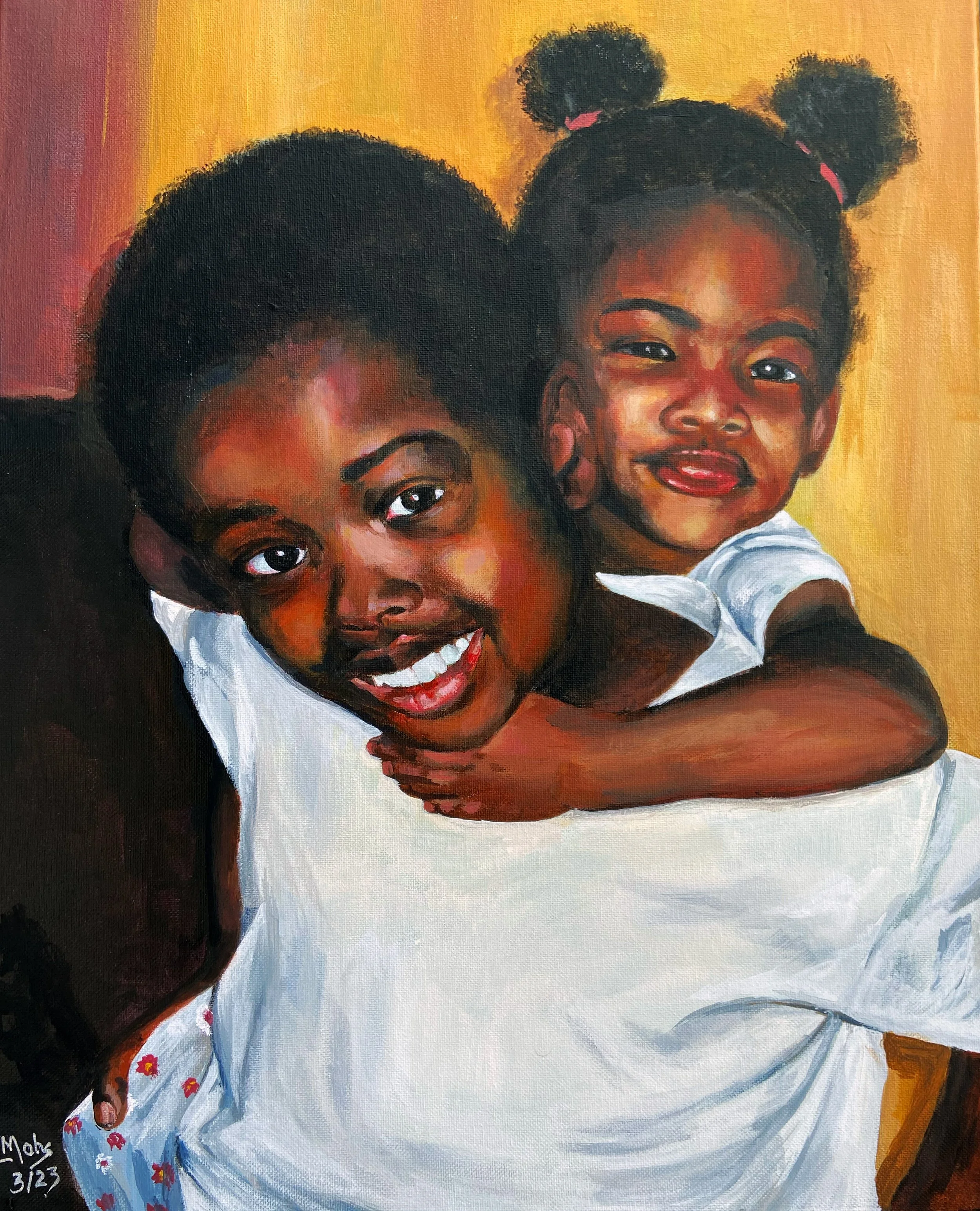 This is a commission I did for my niece, a moment between her two daughters.